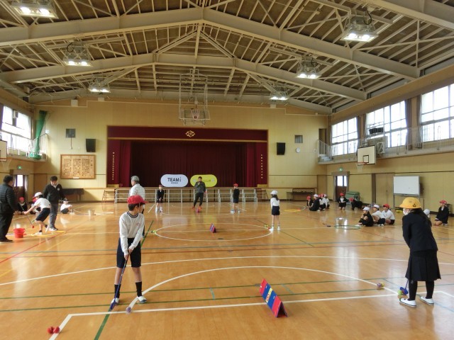 子どもたちは、初めてやる競技に最初は戸惑っていましたが、慣れてくるとしっかりとボールが打てるようになっていきました。