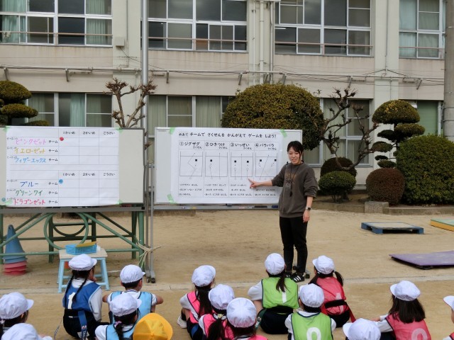 しかも、チームの中で、「どうすれば鬼に捕まらないで宝物を運ぶことができるか!」チームの作戦をしっかり考えながら授業を楽しむことができました。