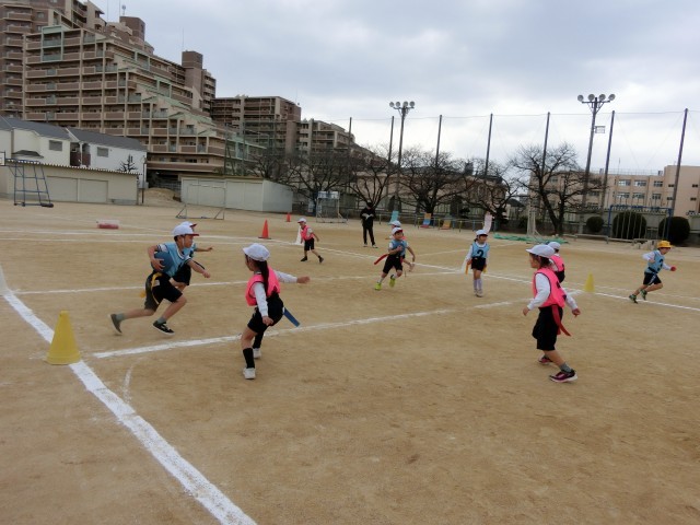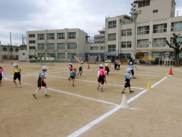 鬼ごっこのエリアの中で、逃げたり・追いかけたり・走りこんだりしながら、様々な動きを身に着けていきました。