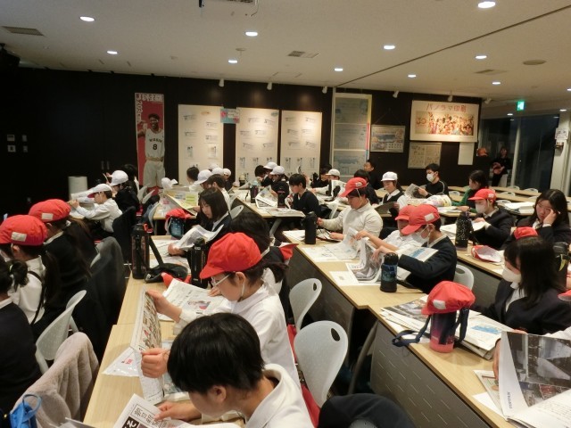 運ばれている途中の新聞1部をいただき、触ったり匂ったりして「あったかい!」や「インクの匂いがする!」など、印刷されてすぐの新聞でしか分からないことを学びました。