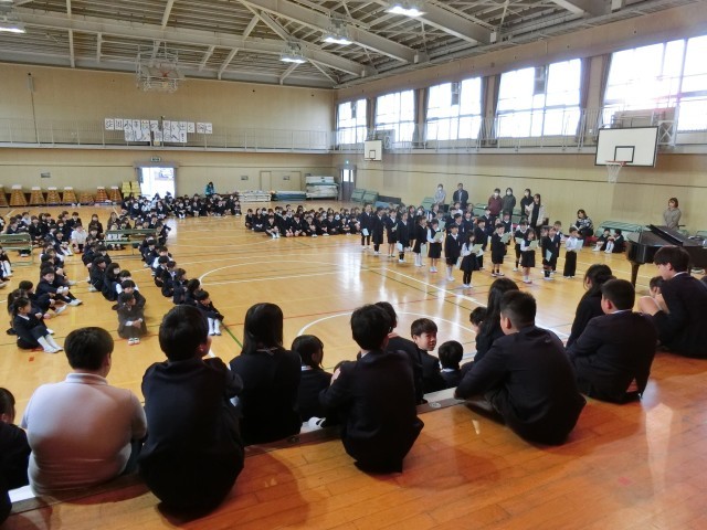 各学年が、歌や合奏で6年生の卒業をお祝いました。