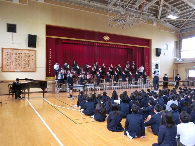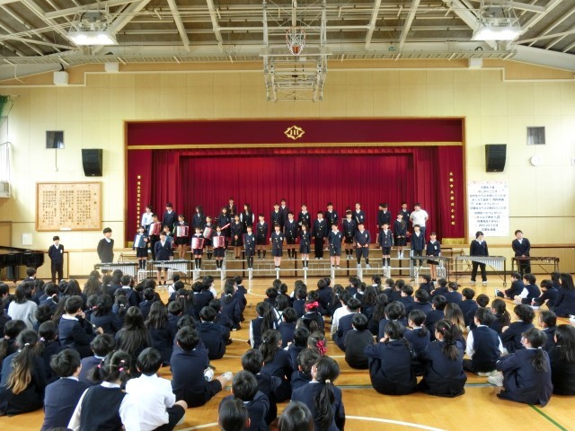 6年生も、在校生に向けて「アフリカンシンフォニー」の合奏を演奏してくれました。迫力ある演奏に、在校生も喜んでいました。