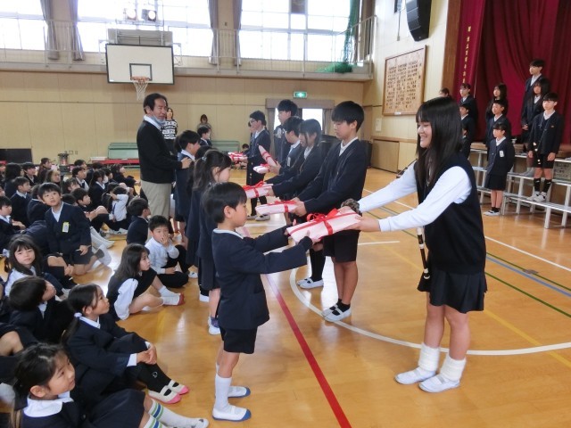 そして、在校生から6年生へのプレゼントが渡されました。