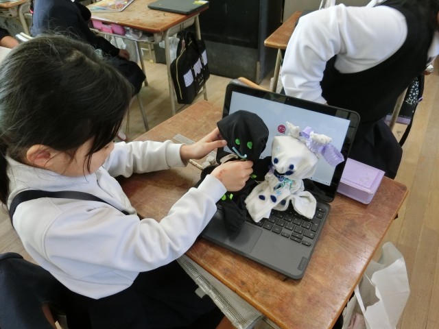 材料の組み合わせ方を工夫すると、とても楽しいキャラがクラスの中で次々に出来上がっていきます。