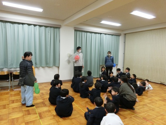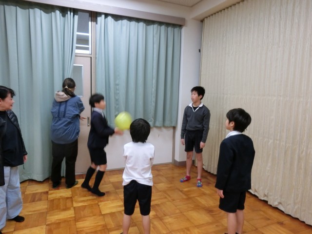 最初に、みんなで風船ゲームを楽しみました。違う学年が混ざっても、みんなで楽しく遊べるのがなかよし学級のいいところです。