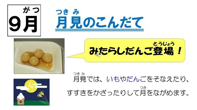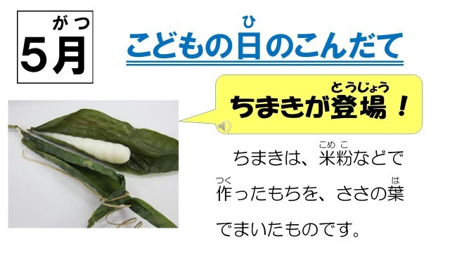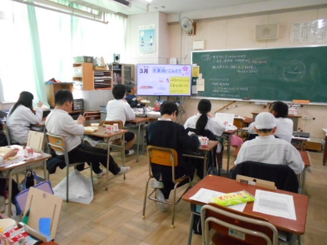 給食時間中には、「1年間の行事献立をふりかえろう」というスライドショーを視聴しました。