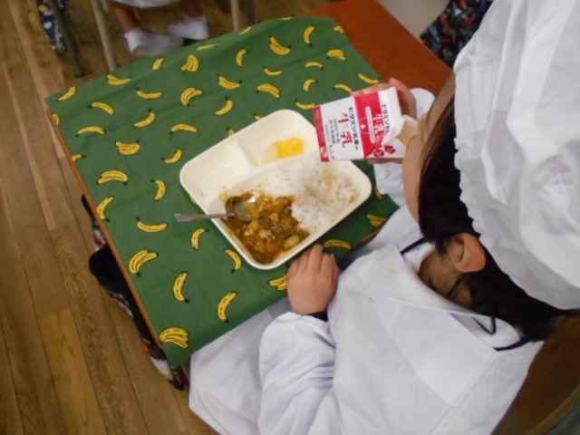 2年生の教室をのぞきに行くと、カレーライスを瞬く間に完食している子どもがいて、1年間で本当によく食べるようになったと改めて実感しました。