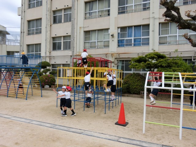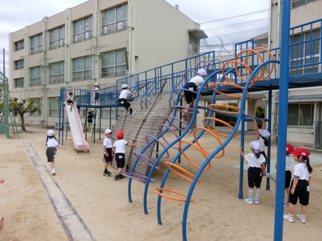 1年生は、こうした遊具で遊べることを楽しみしていました。
