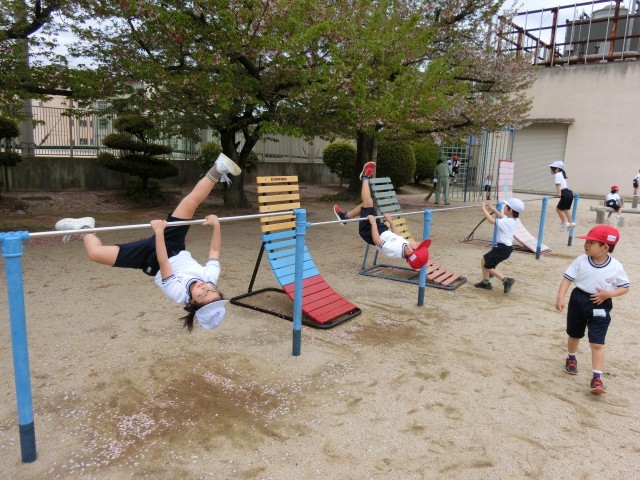 中には、鉄棒で「逆上がり」ができたり、丸太渡りをジャンプしながら動いたりする運動神経のいい子がいてびっくりです。