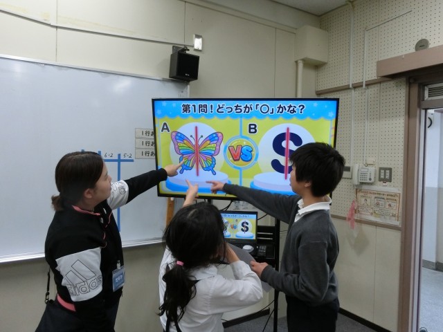 子どもたちは、夢中になって線対称の問題に取り組んでいました。