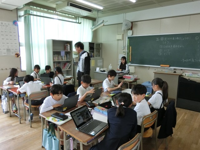 3年生は、自分たちが見つけた生き物を写真に撮り、それの様子を友達に紹介する活動です。タブレット上で編集できるように記録に残しています。