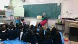 社会の時間は隣の担任の先生と入れ替えています。しっかり勉強しています。教室後ろの...