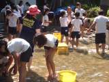 昼食のカレーを食べた後、「魚つかみ」と「焼き板」をしました。 小さなプールに放...