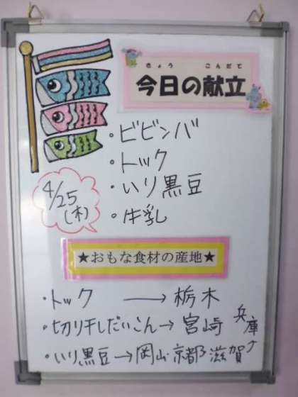 ★4月25日(木)の給食は、 ・ビビンバ ・トック ・いり黒豆 ・牛乳です。