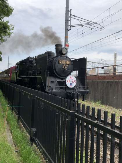 お弁当を食べる公園に沿って本物のSLが汽笛を鳴らして走っています。