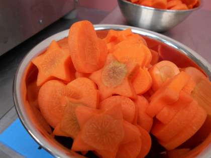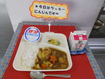 ★今日のカレーライスには、ハートとほしの形をしたにんじんがはいっています。