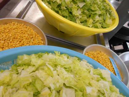 ★5月17日(金)の給食は、 ・牛肉と大豆のカレーライス ・レタスとコーンのサラダ ・ヨーグルト ・牛乳です。