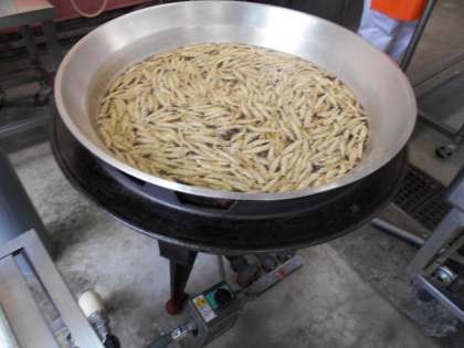 大きな釜に油をはって、あげています。