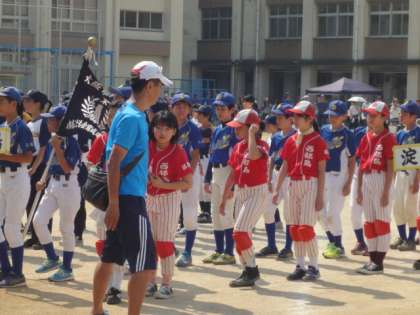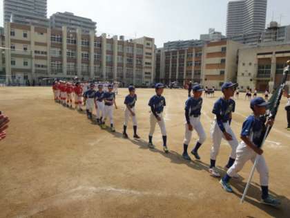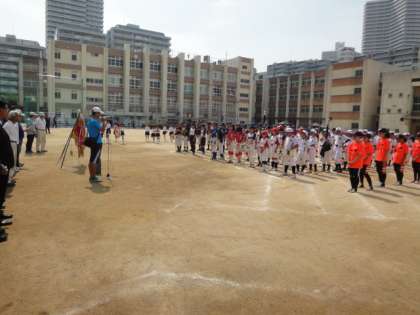 5月26日(日)都島区スポーツ大会が友淵小学校グランドで行われました。女子はキックベースボール、男子はソフトボールに参加しました。青空の下、みんな活躍していました。