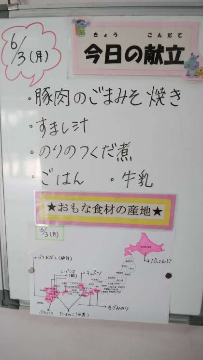 ★6月3日(月)の給食は、 ・豚肉のごまみそ焼き