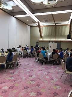 待ちに待った夕食です。みんなで仲良く食べています。 iPhoneから送信