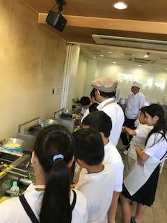 自分で生地を流しこみ、おいしいおまんじゅうを作っています。