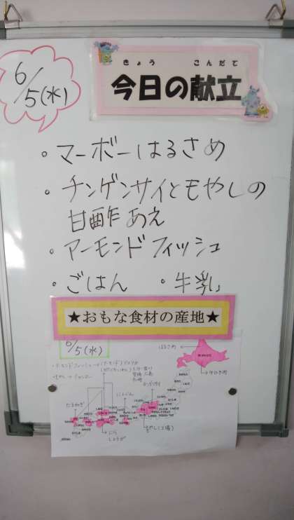 6月5日(水)の給食は、  ・マーボーはるさめ
