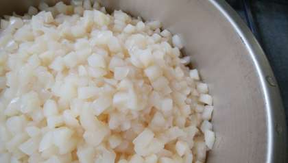 (下)和なしの缶詰です。ひと缶ひと缶、調理員さんが検品をして配缶しました。