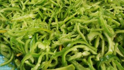 チンジャオニューロウスーは、ピーマンと牛肉を細くきっていためた中国の料理です。中国語で「チンジャオ」は、ピーマン、「ニューロウ」は牛肉、「スー」は、細切りという意味です。肉と歯ごたえのある野菜を組み合わせて作る料理です。
