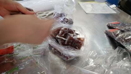 (上)いちごジャムを検品しながら、クラスごとに数えています。