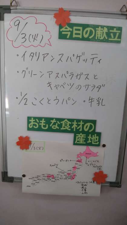 ★9月3日(火)の給食は、 ・イタリアンスパゲッティ