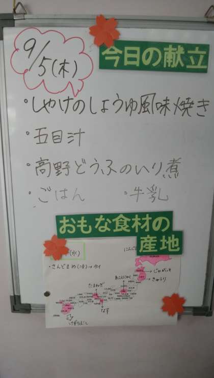 ★9月5日(木)の給食は、 ・さけのしょうゆ風味焼き