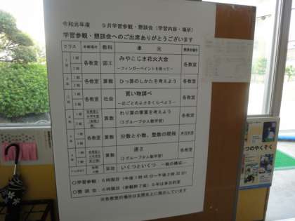 五時間目に学習参観がありました。 各学年の授業内容は以上のようになっています。