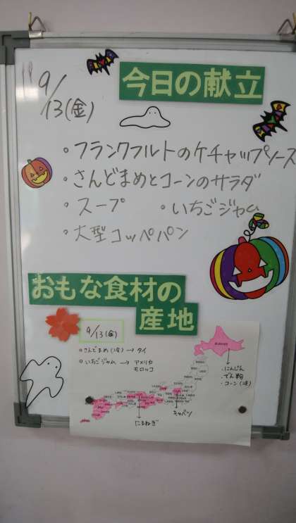 ★9月13日(金)の給食は、 ・フランクフルトのケチャップソース