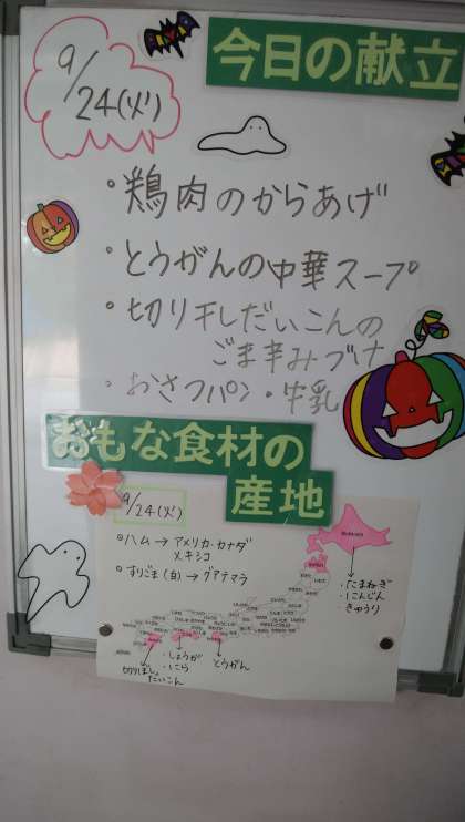 ★9月24日(火)の給食は、 ・鶏肉のからあげ