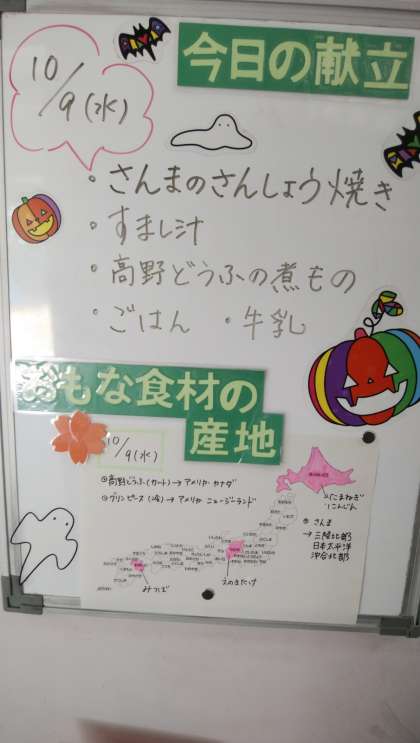 ★10月9日(水)の給食は、 ・さんまのさんしょう焼き