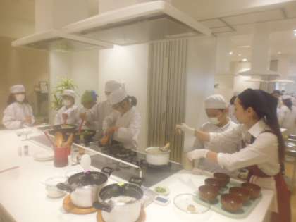 米の炊き方、みそ汁や野菜炒めの作り方を教えてもらいました。