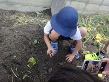 たんぽぽで育てたさつまいもを収穫しました。びっくりするくらいの大きなさつまいもができていました。後日、たんぽぽで調理してたべます。楽しみです。