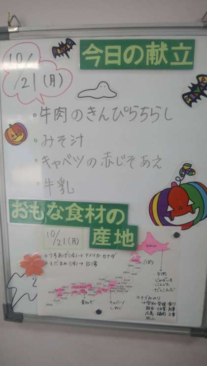★10月21日(月)の給食は、 ・牛肉のきんぴらちらし