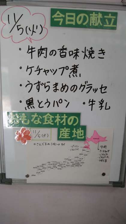 ★11月5日(火)の給食は、 ・牛肉の香味焼き
