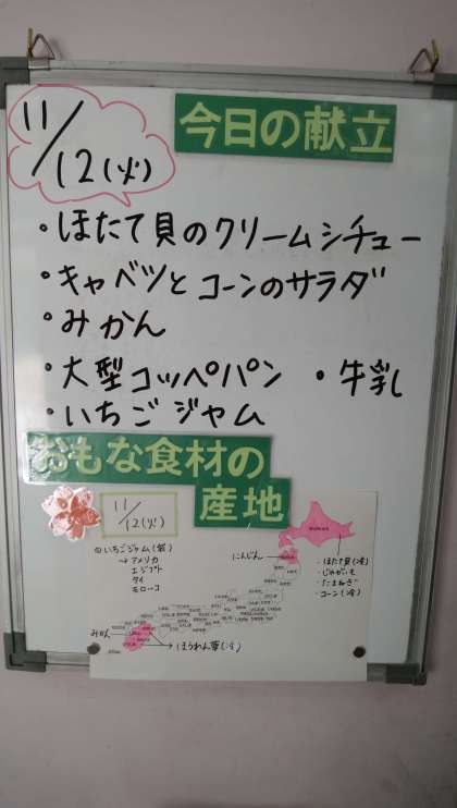 ★11月12日(火)の給食は、 ・ほたて貝のクリームシチュー