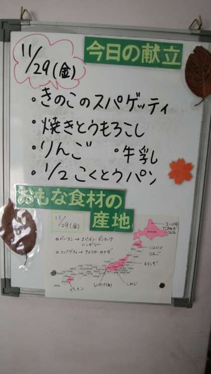 ★11月29日(金)の給食は、 ・きのこのスパゲッティ