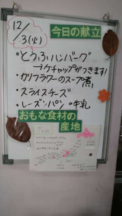 ★12月3日(火)の給食は、 ・とうふハンバーグ