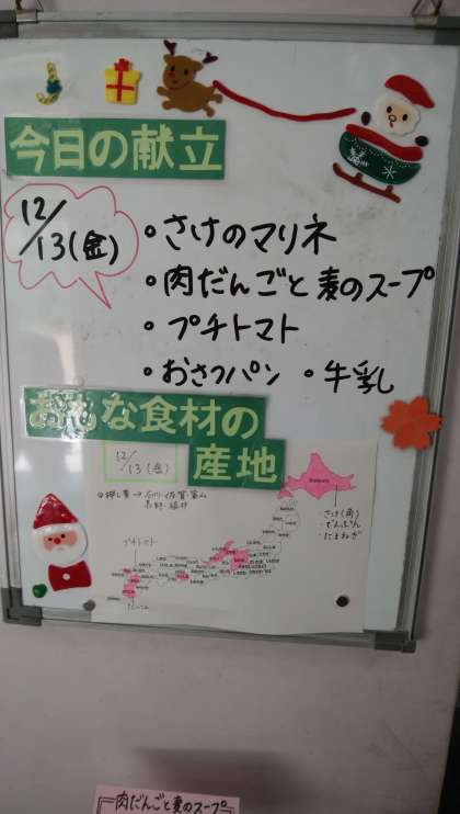 「マリネ」という言葉は、フランス語で「ひたす」という意味です。マリネとは、魚や肉に、たまねぎなどの野菜や油、酢などで作ったマリネソースにからませ、ひたした料理のことです。今日の「さけのマリネ」は、たまねぎ、オリーブ油、りんご酢、白ワインなどで作ったマリネソースを、油であげたさけにからませています。