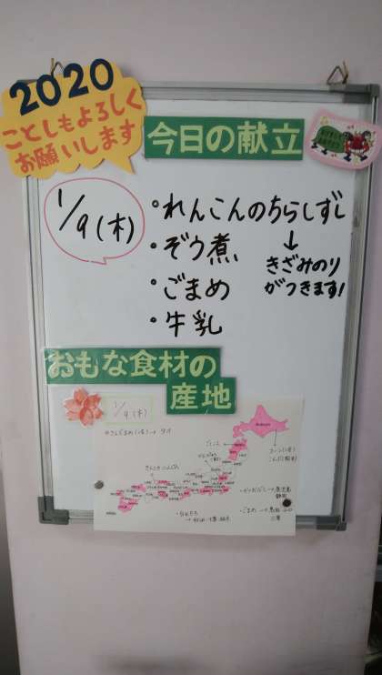 ★1月9日(木)の給食は、   ・れんこんのちらしずし