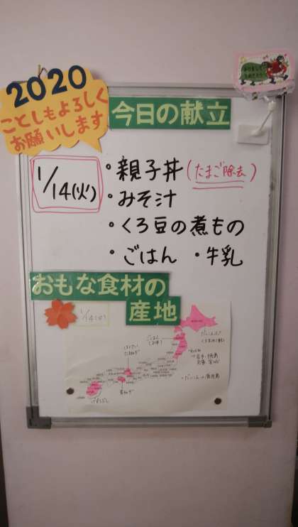★1月14日(火)の給食は、 ・親子丼(卵除去)