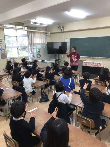 本日は、もこもこ読み聞かせ活動でもお世話になっていた金谷昌子様をお迎えして、歌を通して英語に触れる機会をもって頂きました。リズムに合わせて、身振り手振りも使いながら、楽しく英語に親しむことができました。