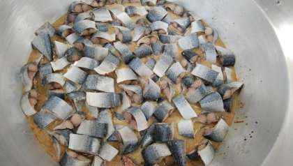釜の底にだし昆布を敷き、湯・しょうが・砂糖・みりん・赤みそを煮た後にさばを加えて、上にだし昆布をのせて煮込んでいます。