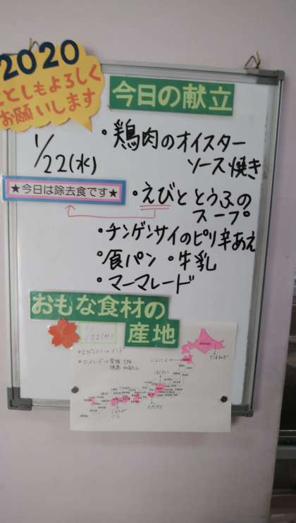 ★1月22日(水)の給食は、 ・鶏肉のオイスターソース焼き