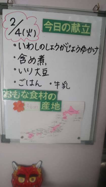 ★2月4日(火)の給食は、  =節分の行事献立です=